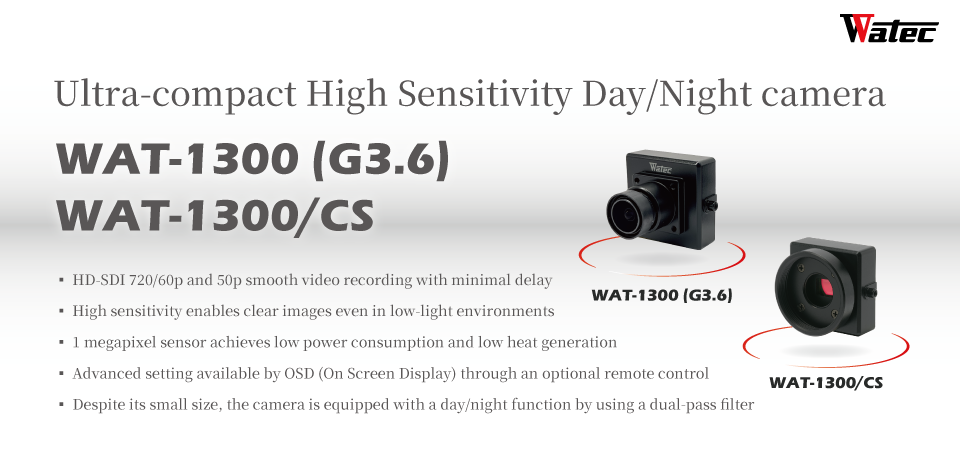 WAT-1300 (G3.6) 1/3.2" Ultra-compact, High Sensitivity, HD-SDI Day/Night |