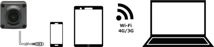 | スマートフォンやタブレットに接続し、Wi-Fi、4G/3Gによるライブ映像伝送が可能 | ||||